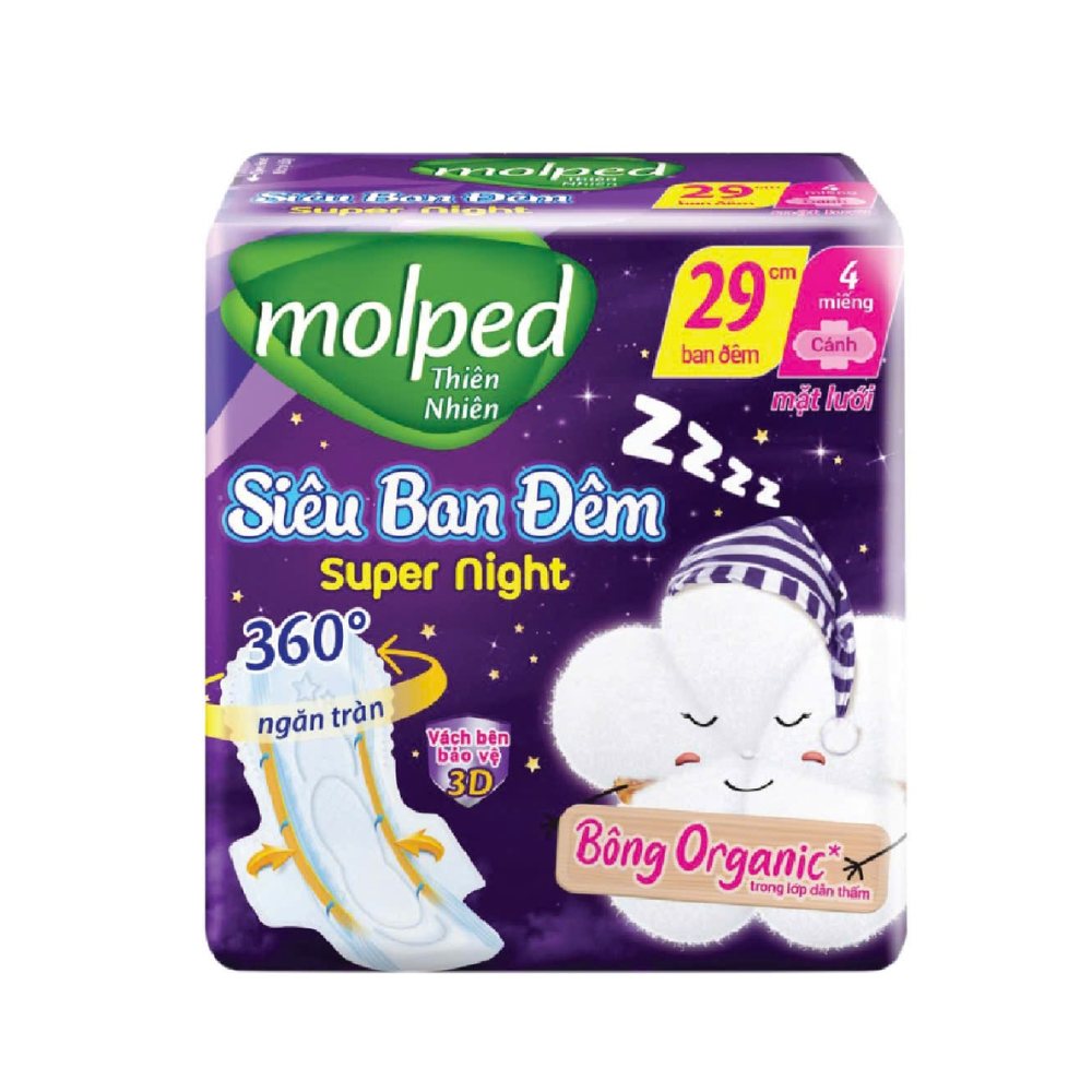 A-molped 날개 달린 슈퍼 나이트 생리대 29cm 4개입 (Băng vệ sinh siêu ban đêm cánh 29cm 4 miếng)